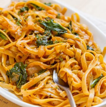 My Pasta in Paprika White Wine Sauce is a fun recipe that comes together pretty quickly, isn’t too difficult, but is really full of flavor. And, it’s a nice romantic dinner that you and your sweetie can enjoy together.
