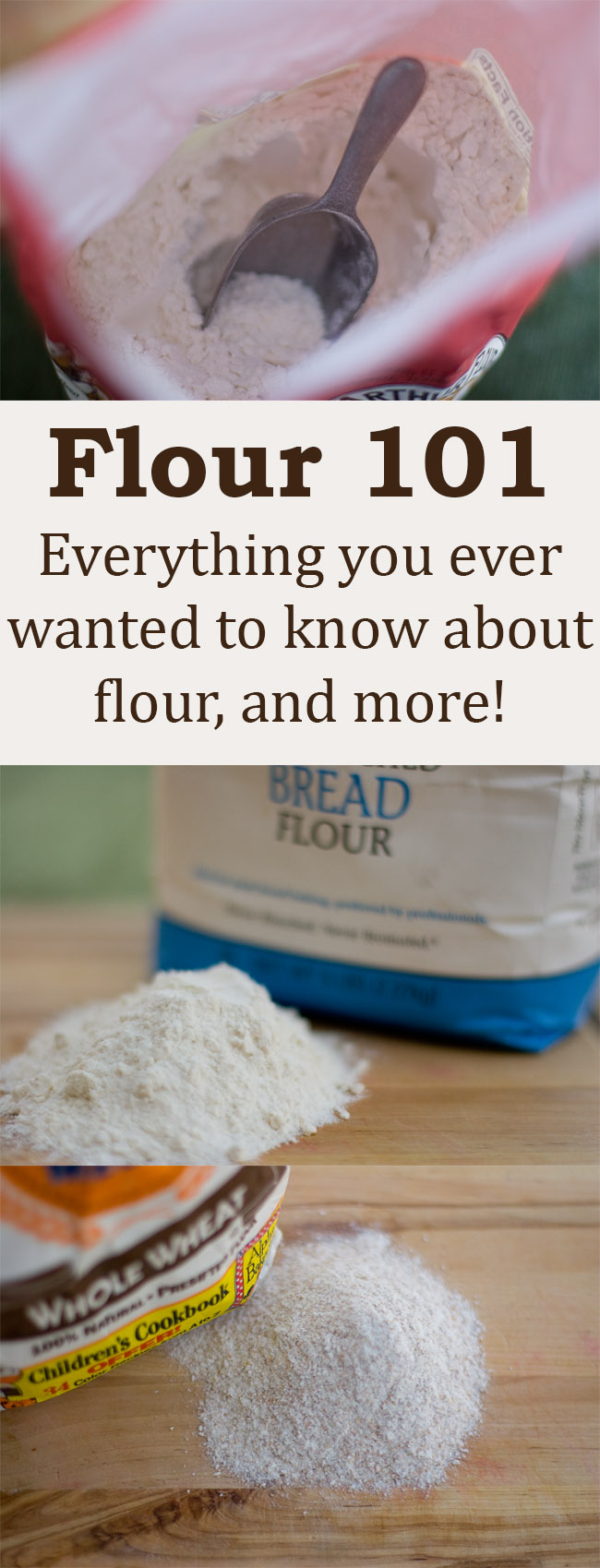 All About Flour. Chock full of information on all-purpose, bread flour, cake flour, whole wheat, how to measure, storage, and more. What to use in your sourdough starter. Basically everything you want to know about flour!