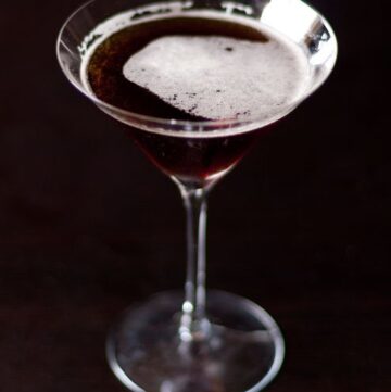 I actually choose a two-part treat for 2012. One to sip while I waited to eat the other. The sipping part was an espresso martini. And, the eating part was a red bean paste filled crepe (you know those traditional Korean or Japanese pastries). Both the martini and the red bean crepe were oh so yummy. I’m still writing up the red bean crepe post, so in the meantime, here’s the espresso martini for everyone to enjoy.