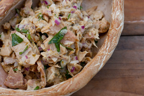 - In a medium bowl, combine undrained tuna, chopped red onion, parsley, and mayo, flaking tuna as needed with a fork.